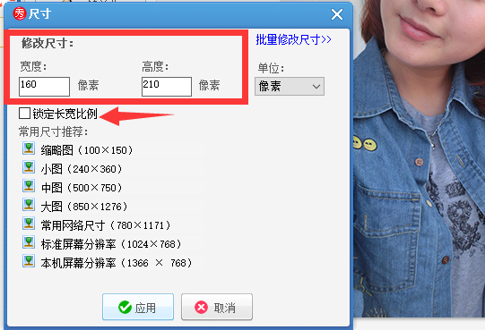 在框中输入自己想要的图片尺寸160*210,然后点击确定。