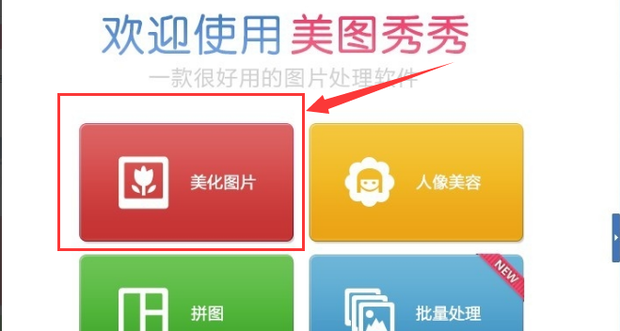 首先,打开美图秀秀,进入首页,点击美化图片。