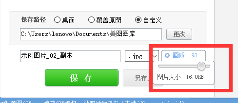 在保存时,选择自己容易找到的路径,并且在“.jpg”右边有“画质”选项,点击即可选择图片大小范围。