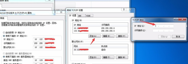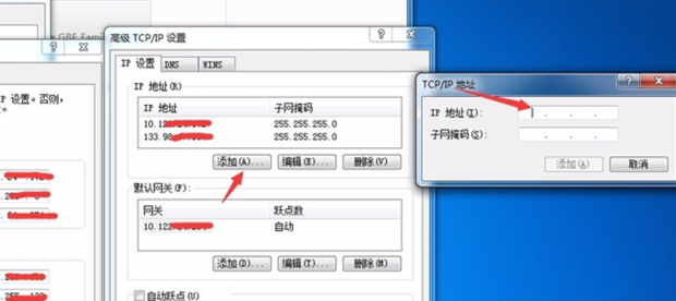 设置好IP地址后点高级----在高级IP地址处点添加----输入你的内网IP地址与内网的子网掩码。