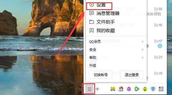 来到QQ登陆页面,找到下面的主菜单图标,点击并打开设置。