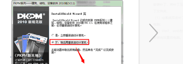 出现下图,选择“不,稍后再重新启动计算机”,点击“确定”。