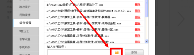 点击下图图标,将pkpm软件安装包放的文件夹和刚在D盘新建的安装目录选择添加信任