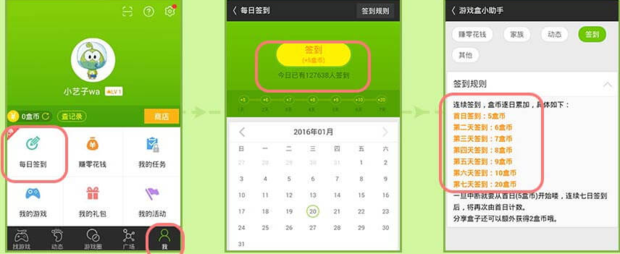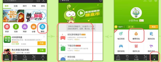 每日任务,每日签到赚5-20盒币,下载推荐应用,赚1000+盒币,试玩游戏,每天赚100+盒币,完成5个日常任务,赚38盒币,分享资讯文章,被看1次就有1盒币(所以要发各大游戏社区,别乱发否则转化率极低)。