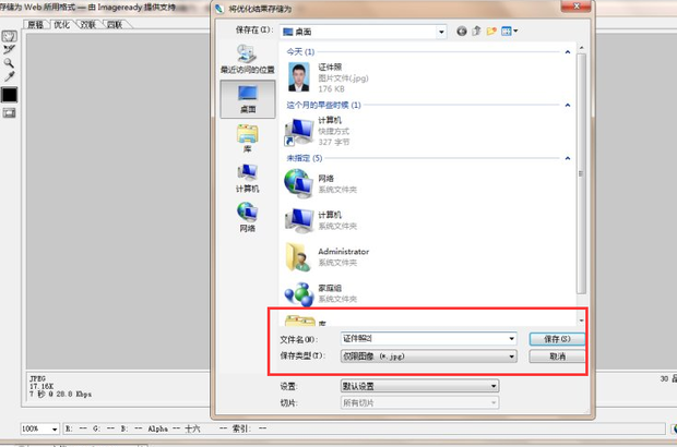 点击存储,将文件名修改为证件2以区别原图,保存类型选择为*jpg,点击确定