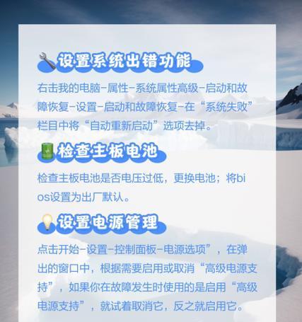 在现代计算机使用中,自动重启功能可以在系统遇到错误或异常情况时,帮助用户迅速恢复系统的正常工作状态。对于网络管理员或一般用户而言,理解并设置网关自动重启电脑的方法,是确保网络稳定和计算机高效运行的关键措施之一。本文将全面指导您如何设置网关以实现自动重启电脑的功能。