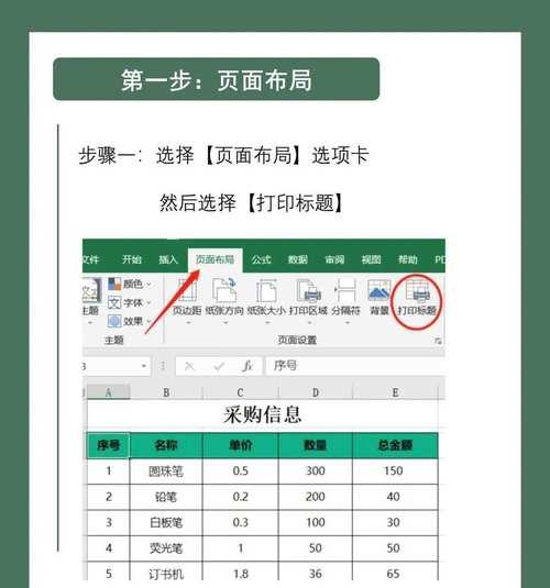 在处理大量数据时,Excel是一个非常方便的工具。然而,在打印这些数据时,人们经常遇到一个问题:当表格跨越多个页面时,每个页面的表头都没有显示。这就使得用户难以辨认每行数据所对应的列。为了解决这个问题,我们需要掌握一些方法来使Excel中的每页都显示表头。