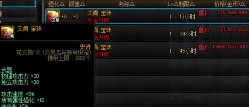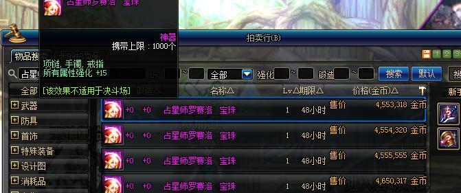 九、通过拍卖行购买武器15属强宝珠