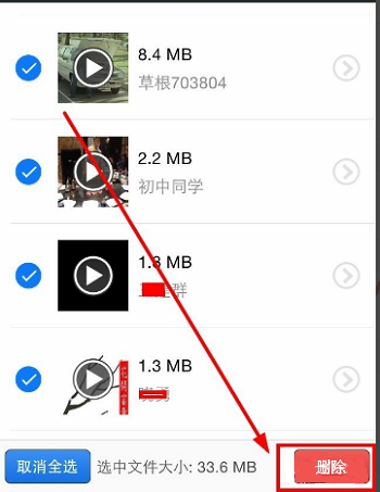 选择完成后,点击右下角红色【删除】键,进行文件删除