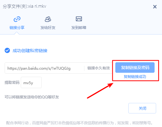 这时候开始复制“链接及密码”。