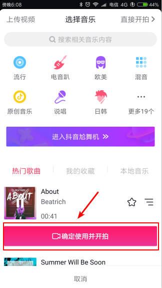 选择一首歌曲作为背景音乐,点击“确定使用并开拍”